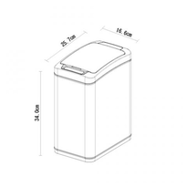 Košík o objemu 8 litrů s automaticky otevíraným víkem, díky malým rozměrům jej lze umístit na pracovní stůl, polici nebo stůl. Jeho zesílená konstrukce umožňuje umístění i ve vlhkých místnostech jako je koupelna. Dno nádoby je zajištěno protiskluzovou gumovou základnou, která zajistí, že koš bude vždy na svém místě.