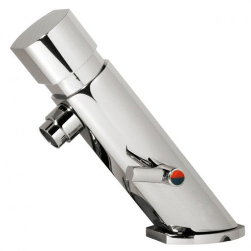 A self-closing upright washbasin tap designed for washbasins with one hole. The mixer was designed for public bathrooms - durable, resistant to vandalism, intended for intensive use. The self-closing mechanism of the water supply has a positive effect on reducing water consumption. The water temperature adjustment lever is designed to make adjustments easier. Washbasin tap with PZH certificate.