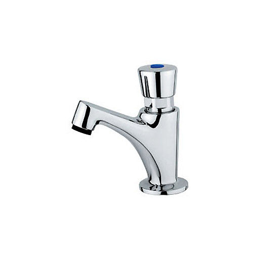 Temporärer, selbstschließender Wasserhahn für Waschbecken mit einem Loch, ausgestattet mit einem Mischer, dank dem der Wasserhahn angeschlossen werden kann zu heißem und kaltem Wasser. Der Mixer kann an maximal eine Batterie angeschlossen werden. Der Wasserhahn wurde für öffentliche Badezimmer entwickelt – langlebig, vandalismussicher und für den intensiven Gebrauch konzipiert. Spart über 50 % Wasser und Energie.