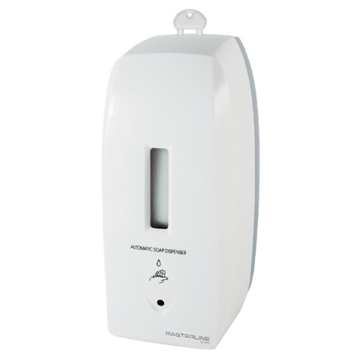 Dozownik mydła w płynie lub żelu do dezynfekcji rąk o pojemności 500 ml. Wykonany z białego tworzywa sztucznego, wyposażony w wewnętrzny zbiornik na mydło, co zapobiega zanieczyszczeniu powierzchni roboczej. Uruchamiany bezdotykowo za pomocą czujnika, montowany na ścianie. Polecany do pomieszczeń użyteczności publicznej i biur, łazienek oraz zakładów produkcyjnych.
