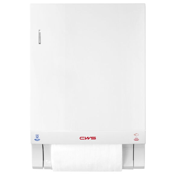 The CWS boco touchless cotton towel dispenser is a maintenance-free device that can be used at home and in a hotel. The plastic material of the device prevents damage. You can control the water flow with adjustable delay settings and hand wash your rolls if necessary. Thanks to the option of purchasing or renting, this device allows you to use only one roll of towels when washing them.