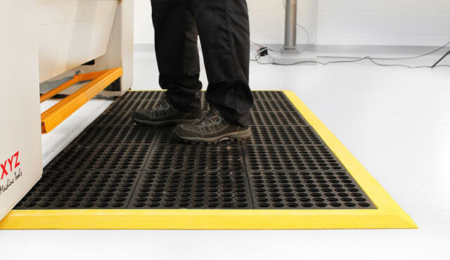 Mata przemysłowa RAMPMAT to jeden z najchętniej kupowanych produktów marki COBA, który doskonale nadaje się do przeróżnych przestrzeni przemysłowych. Posiada otwory drenujące, które gromadzą zanieczyszczenia jak i odprowadzają rozlane ciecze. Ponadto mata izoluje od zimnej posadzki, ma właściwości antypoślizgowe oraz fazowane krawędzie, które niwelują ryzyko potknięcia.