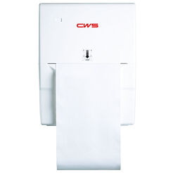 Bathroom accessories made of white plastic from CWS-boco are ergonomic, slim, and aesthetically pleasing products, belonging to the award-winning Paradise line, which received the Red Dot Design Award for its innovative design. Designed with efficiency and cost-saving in mind, such as paper towels and liquid soap, and appreciated for their environmentally friendly solutions, products made of ABS plastic are a versatile set of toilet accessories and are perfect for public restrooms and bathrooms with high traffic. The manufacturer offers such bathroom fixtures made of white plastic, such as foldable paper towel dispensers, paper and cotton towel dispensers, toilet paper dispensers, trays for hand sanitizer dispensers, toilet seat disinfectant dispensers, cleaning paste dispensers, foam soap dispensers, trash cans, and automatic air fresheners.
