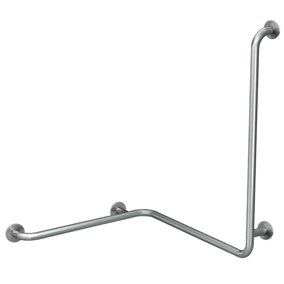 90° Eckhandlauf, zweischichtig, horizontal und vertikal für die Aufputzmontage, aus Edelstahl mit matter, rutschfester Oberfläche. Ideal für Sicherheit und Komfort.