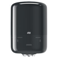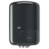 Centrálně dávkovaný černý plastový držák na papírové ručníky ve válečku Tork