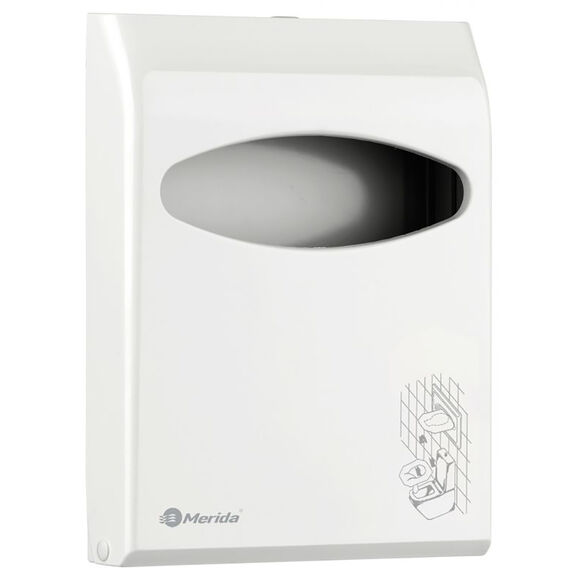 Zásobník na záchodové sedátko Merida, který výrazně zvyšuje úroveň hygieny na veřejných toaletách, je koupelnovým doplňkem, díky kterému se lidé na veřejných toaletách nemusí obávat kontaktu. s nebezpečnými bakteriemi, které se mohou vyskytovat na povrchu záchodového prkénka. Díky montáži na stěnu a použití vysoce kvalitního plastu je snadné získat a vydat jednorázové kryty, tento bílý prvek sanitárního vybavení umožňuje lidem používajícím toaletu cítit se pohodlně a bezpečně, což je důležité zejména na prestižních místech, kde záleží na blaho a zdraví svých zákazníků s vysokou návštěvností, jako jsou kliniky, soukromé kliniky a ordinace lékařů, fitness kluby, tělocvičny a zdravotnická zařízení.
