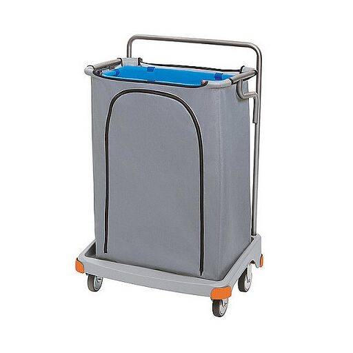 Vozík pro sběr a přepravu odpadu nebo špinavého prádla. Vybaveno 120 l plastovým pytlem a vnějším ochranným vakem. Základna vozíku je vyrobena z odolného plastu a hlavní rám a rám tašky jsou vyrobeny z nerezové oceli, což zaručuje dlouhou životnost. Otočná kola vpředu a pevná kola vzadu umožňují pohodlný pohyb kočárku i pod úhlem. Zaoblené nárazníky na hranách základny chrání stěny, nábytek a další povrchy před poškozením.