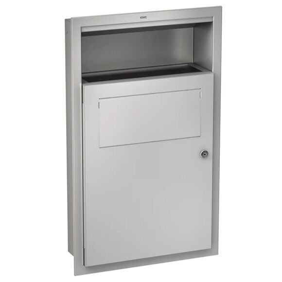 Nerezová ocel, matně broušený povrch, tloušťka materiálu 0,8 mm. Objem přibližně 6 litrů. Integrovaná rukojeť na odpadkový pytel. Samozavírací víko. Výklenek na hygienické papírové sáčky pro likvidaci vložek a tamponů. Může spolupracovat s plastovým dávkovačem hygienických sáčků RODX191. Válečkový zámek s univerzálním klíčem Franke. Součástí balení jsou nerezové šrouby a rozpěrné kolíky.