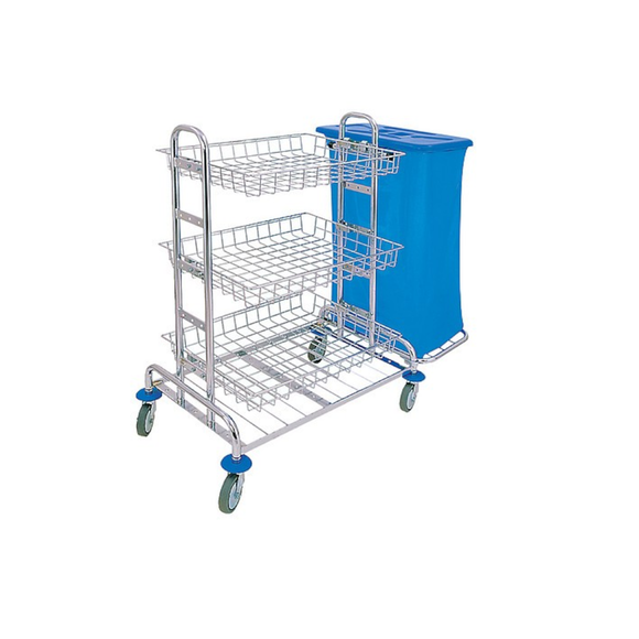 Úklidový vozík určený především pro profesionální úklidové firmy. Chromovaná stabilní konstrukce úklidového vozíku je umístěna na gumových kolečkách, které pracují tiše a nepoškozují podlahy. Úklidová sada je vybavena koši na saponáty a čisticím příslušenstvím a výměnným pytlem na odpadky o objemu 120 litrů. Celek je vyroben z vysoce kvalitních materiálů, odolný, odolný a snadno se používá.