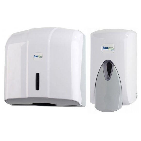 Sada: ručník na papírové ubrousky a plastový tekutý mýdlový dávkovač Faneco POP bílý