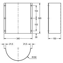 Maße (B × H × T): 340 × 365 × 150 mm.