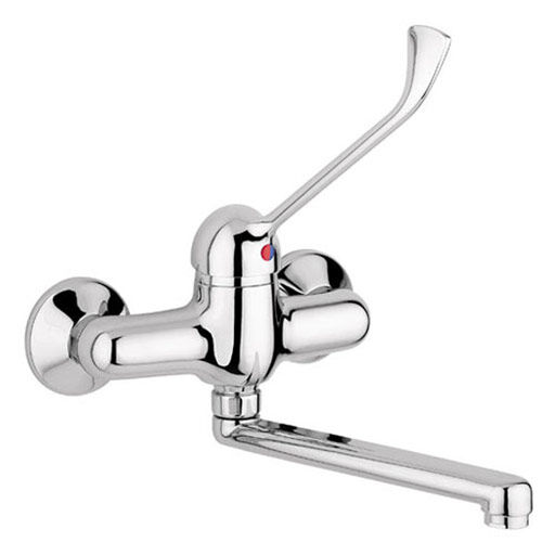 Klinische Batterie zur Verwendung in Krankenhäusern, Kliniken, Arztpraxen, Gesundheitszentren und ähnlichen Orten. Der Wasserhahn ist mit einem Winkelhebel ausgestattet, der für maximale Hygiene sorgt. Konzipiert für die Wandmontage.