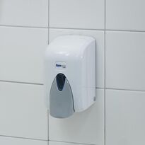 - Hygiena – dávkovač zabraňuje používateľom priamo sa dotýkať mydla, čo pomáha udržiavať vysokú úroveň hygieny v kúpeľni.