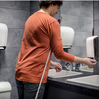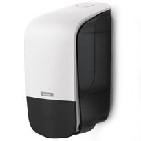 Liquid soap dispenser with a capacity of 0.5 l. Made of ABS plastic, white with black elements. Thanks to the convenient button, dispensing soap is quick and easy. There is an inscription in Braille on the soap dispenser for the visually impaired. A 1000 ml liquid soap dispenser is also available. It is characterized by an elegant shape and universal color. The dispenser is designed to dispense liquid soap, foam soap, toilet seat disinfectant and shower gel. The lock opens with or without a key.