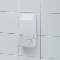 Dispensador de jabón líquido fabricado en plástico ABS de color blanco. Un botón ancho garantiza una dosificación cómoda y, gracias a la capacidad óptima de 750 ml, el dispensador no requiere un rellenado constante. El dispensador está equipado con una cerradura que protege el contenido contra el acceso de terceros. Adecuado para estancias como baños, centros sanitarios o gastronomía.