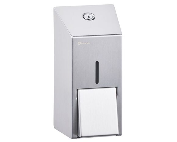 Dávnik na tekuté mydlo s objemom 400 ml vyrobený z nehrdzavejúcej ocele s matným povrchom je určený na montáž na stenu. Najkvalitnejšie materiály a dokonalé spracovanie zaručujú spoľahlivosť dávkovača. Zariadenie je vybavené pevným oceľovým cylindrickým zámkom v jednej rovine s povrchom. Produkt je súčasťou inovatívnej línie Merida Stella.