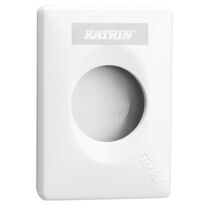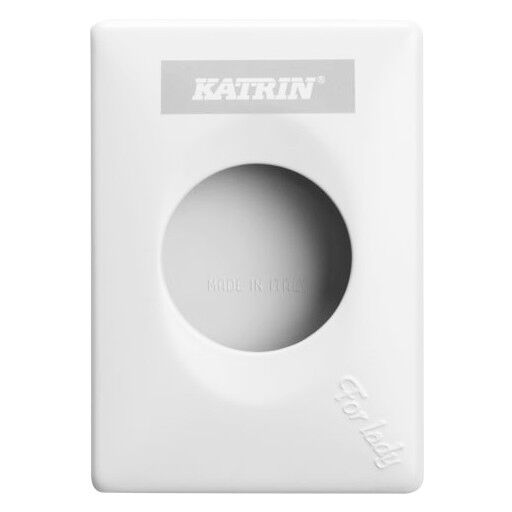Dispensador Katrin diseñado para bolsas higiénicas. Fabricado en plástico ABS de color blanco. Diseñado para montaje en superficie. Funcionará en cualquier baño público. Es un equipamiento estándar en todos los baños de mujeres. Es discreto y muy fácil de recargar.