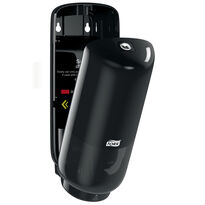 Tork Seifenspender für Schaumseife, schwarz, Elevation-Linie, hergestellt aus hochwertigem ABS-Material, beständig gegen mechanische Beschädigungen. Es handelt sich um ein Gerät mit großem Fassungsvermögen, das ein selteneres Nachfüllen der Seife ermöglicht. Die automatische Dosierung gewährleistet einen hohen Hygienestandard. Wenn der Spender länger als eine Woche nicht verwendet wird, empfiehlt es sich aufgrund des Stromverbrauchs der LED, die Batterie zu entfernen.