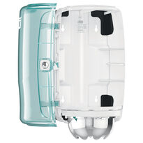 Pojemnik na czyściwo w rolce Tork mini, biało-turkusowe tworzywo ABS