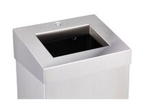 Made of stainless steel with a matte finish, an open waste container with a capacity of 45 liters. The container has a built-in, removable cover with a hole. The highest quality materials and perfect workmanship guarantee the reliability of the waste bin. The device is equipped with a solid, steel cylinder lock flush with the surface. The product is part of the innovative Merida Stella line.
