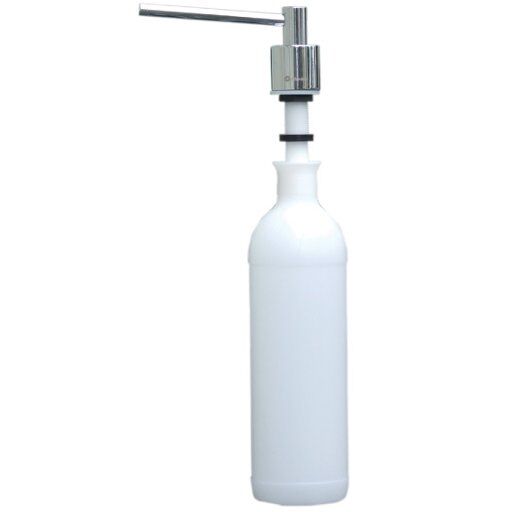 Liquid soap dispenser "cylinder", with a capacity of 1000 ml, intended for tabletop installation. White housing with a polished finish. The metal liquid soap dispenser is designed for repeated refilling from a canister.