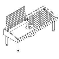 Chamber of the device made of synthetic resin-bound mineral composite MIRANIT, white color. Wall-mounted. Can be rotated 90° each time with a drain body with a sludge trap. Each station equipped with a tilting stainless steel grate. Welded chamber base, powder-coated in the color of the basin. Height-adjustable legs. Includes: installation kit, integrated siphon.