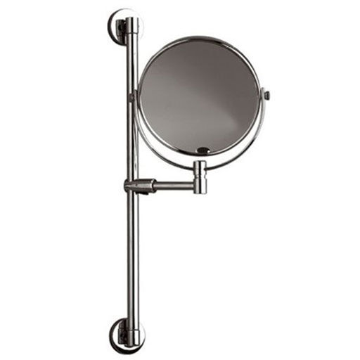 Magnifying mirror for a women's bathroom. Carefully made in an elegant style. Comfortable to use thanks to the tilt adjustment.