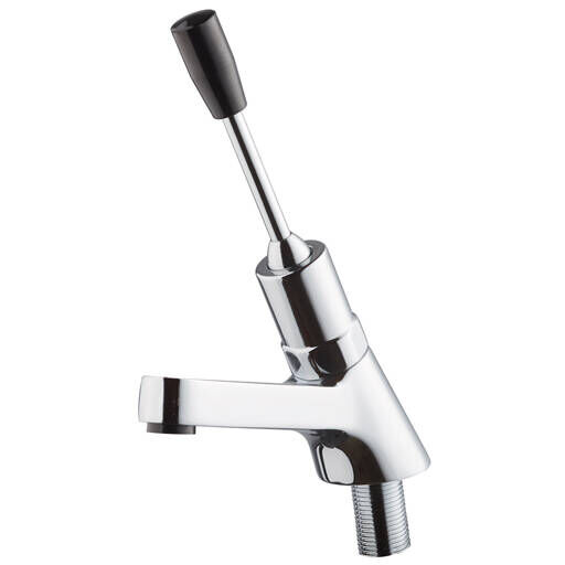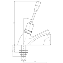 Time-controlled, self-closing tap designed for washbasins with one hole. The faucet can be connected to cold or mixed water. Designed for public bathrooms - durable, resistant to vandalism, intended for intensive use. Saves water and energy by over 50%.