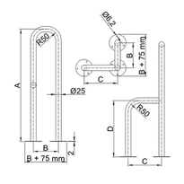 Sink rail for disabled toilets with two support points. It has two handles, 40 cm and 25 cm long. Entirely made of polished stainless steel; intended for installation on the right side of the toilet or washbasin. This washbasin holder is perfect for bathrooms and toilets for disabled people. The handrail is certified by the National Institute of Hygiene.
