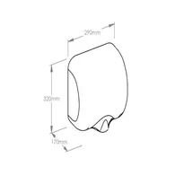The dryer casing is made of black painted stainless steel, which ensures its durability and aesthetic appearance. Integrated blue LED light helps users place their hands correctly, increasing drying efficiency.