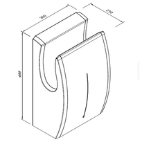 ORKAN works automatically, thanks to two built-in photocells that activate it when you put your hands under the air stream. This stream reaches a speed of 106 m/s and perfectly removes water from the hands, ensuring a drying time of only 7-9 seconds. The air temperature is 40°C, which guarantees effective drying of the hands. The noise level during operation of the dryer is only 70 dB, which makes the device relatively quiet in use.