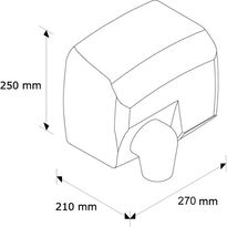 The dryer has compact dimensions, which allows it to be easily mounted on the wall. The drying time is only 29 seconds, the dryer emits a noise level of 65 dB and the air temperature is 53 ºC. It is activated automatically by a proximity sensor, which ensures comfort and hygiene of use.