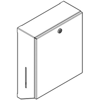 Stainless steel paper towel dispenser for wall mounting. Hinged front cover with a standard Franke key cylinder lock. There are peepholes on the side walls to help control the level of towels. It can hold approximately 500 - 800 pieces of towels, depending on their arrangement. The set includes stainless steel screws and wall plugs.