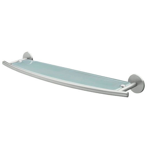 Wall cosmetic shelf. Made of glass and brass, the wall elements are made of an alloy of zinc and aluminum. Fixed to the wall with screws or glue.