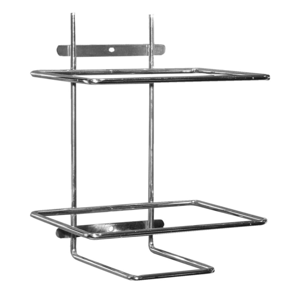 Canister holder made of chrome-plated steel bars. Designed for wall mounting. The device makes it easier to dose the cleaning agent.