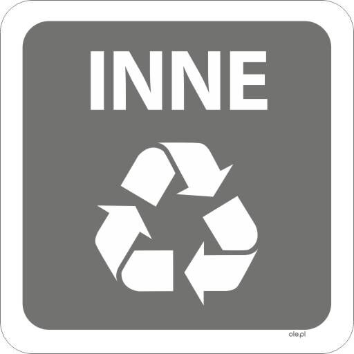 Square sticker for waste sorting containers and waste carts. The self-adhesive label shows the word OTHER and the recycling symbol on a gray background. The "Other" sticker makes it easier to sort non-recyclable waste.