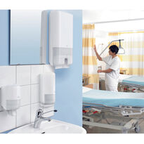 A modern and easy-to-use multi-panel paper towel dispenser. Made of white ABS plastic. The container is equipped with an overfill protection. The touchless dispensing system ensures maximum hygiene for each user - each user only touches their own part of the towel. Aesthetic, solid workmanship ensures long use of the presented multi-panel towel dispenser.