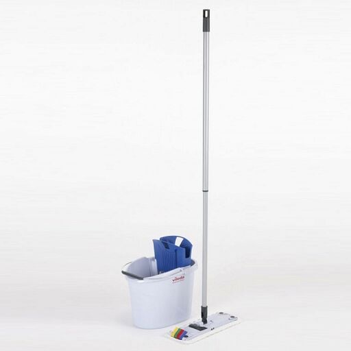 UltraSpeed Mini starter kit is a set for cleaning floors in small spaces. It is best for cleaning: apartments, offices, shops, canteens and toilets. Thanks to its small size, we can reach even hard-to-reach places, and the clever connector makes it easy to clean walls and sill strips. When this set was compared with other string mops, it turned out that using the US Mini set shortened the cleaning time by more than half and the floor drying time by several minutes. Fastening the mop with latches allows you to avoid direct contact of your hands with dirt.