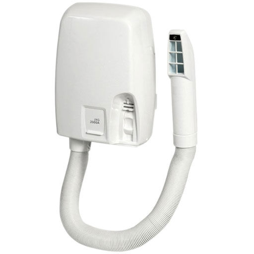 Bisk 800 W pool hair dryer, ideal for active people spending time in swimming pools. The dryer is made of ABS plastic, white. Thanks to its dimensions - height 255 mm, width 180 mm and depth 110 mm - it is a compact and easy-to-install device. Wall-mounted using screwed elements.