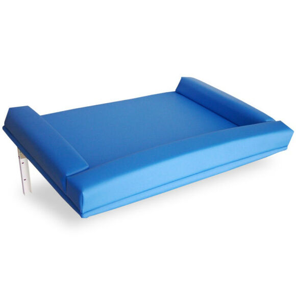Baby changing table adapted for use in public facilities, including those with limited space. The baby changing station folds to the wall. Solid construction and made of washable material ensure comfortable and hygienic use. The edges of the soft upholstery have been raised, which prevents the child from falling out.