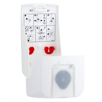 The dispenser for soaked wipes is made of the highest quality ABS material. The wipe dispenser is designed for wall mounting and dispenses soaked wipes from disposable cartridges. White housing with a red window. Container locked with a key.