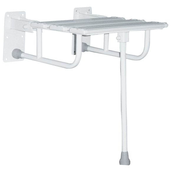 Asiento de ducha plegable con pata de acero blanco de 25 mm de diámetro de Faneco