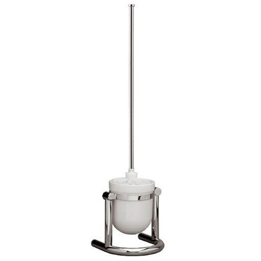 Escobilla de baño fabricada en latón cromado y cerámica. El cepillo tiene un aspecto estupendo, lo que lo hace adecuado para lugares de alto nivel, como baños de hoteles y restaurantes.