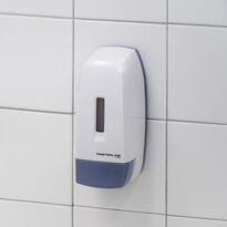 Un dispensador de jabón líquido de 0,5 litros fabricado en plástico ABS está diseñado para su uso en baños públicos y otras estancias similares. El dosificador dispone de un botón dosificador de gran tamaño, cómodo y ergonómico. Es un modelo con un diseño clásico, adaptado a prácticamente cualquier tipo de estancia. Fácil de usar, elegido con entusiasmo.