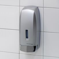 Dispensador de jabón líquido con un acabado superficial satinado agradable a la vista. Es apto para todo tipo de estancias, y por su capacidad está especialmente indicado para baños y aseos con mucho tránsito. Es cómodo de usar y fácil de instalar. Gracias al contenedor de jabón interno, el dispensador se puede rellenar desde el bote.