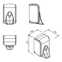 - Dimensiones: - altura: 170 mm, - ancho: 105 mm, - profundidad: 125 mm
