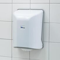 Dispensador de toallas de papel en rollo de distribución central POP Faneco, plástico blanco