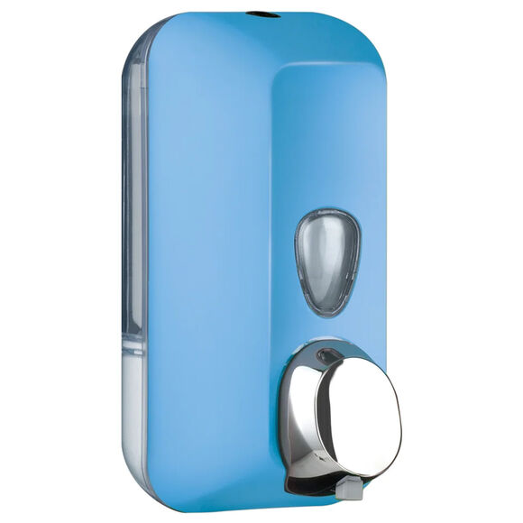 El atractivo y moderno dispensador de jabón en espuma de Mar Plast es un dispositivo que diversificará y embellecerá la decoración de cualquier baño. Está fabricado en plástico ABS con acabado engomado y antideslizante, en un bonito color azul claro. Con una capacidad de 500 ml, el dispensador contiene más jabón que la mayoría de los dispensadores de jabón en espuma. Un uso cómodo y cómodo está garantizado por el botón de dosificación ergonómico y el visor, que permite comprobar rápidamente el nivel del líquido restante.