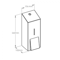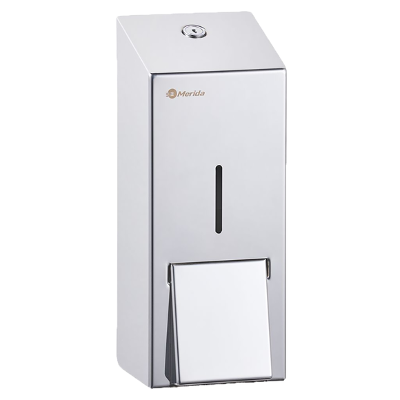 Dispensador de jabón líquido con capacidad de 880 ml, diseñado para montaje en pared, fabricado en acero inoxidable con superficie pulida. El dispensador de jabón líquido Merida Stella Maxi está equipado con una sólida cerradura de cilindro de acero a ras de la superficie. Un contenedor diseñado para ser rellenado varias veces desde un bote.