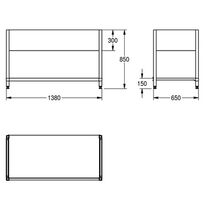 - Dimensiones: ancho 1380 mm, profundidad 650 mm, altura 850 mm